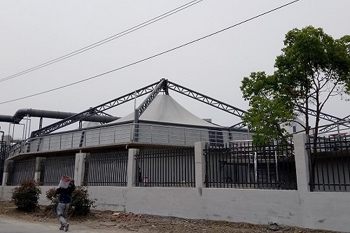玻璃钢采用的纤维强化塑料,虽然经过处理,但本质仍是塑料,就避免不了老化问题,在紫外线、风沙雨雪、化学介质、机械应力等作用下容易导致性能下降。而污水池反吊膜所使用的氟碳纤维膜,外表经过先进的UV光固化技术处理,可有效提高膜材料的耐持久性,膜材隔离了腐蚀气体和钢架的接触,同时增加了钢架和反吊膜的使用年限,膜材一般可使用15年以上。