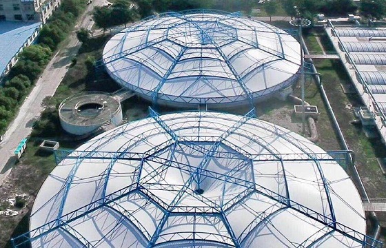 污水池反吊膜密封罩是目前市面上灵活性比较好的定制型污水池密封罩,除了造型多样外,它还可以制作成固定式或者随动式。咱们常见的污水池密封罩基本上是固定式的,只有少数是随动式的,下面一起来了解下随动式污水池反吊膜。