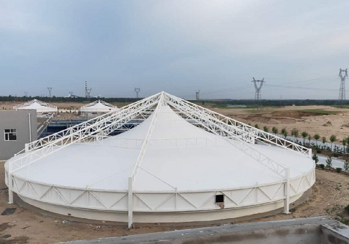 3. 污水池反吊膜结构密封罩工程的加工环节:根据污水池反吊膜结构密封罩设计方案进行材料采购、加工成型。由于钢材、膜材的加工工序较为繁琐和专业,只有专业的污水池反吊膜结构密封罩厂家才能做到与图纸分毫不差,才方便现场进行安装。