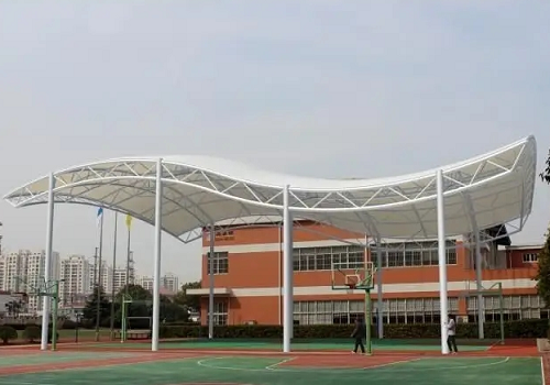 1. 室外风雨球场加装钢膜结构罩棚使用的膜材跟钢材都是设计后工厂加工,然后运送到现场直接安装,所以室外风雨球场加装钢膜结构罩棚的施工周期一般都很短。