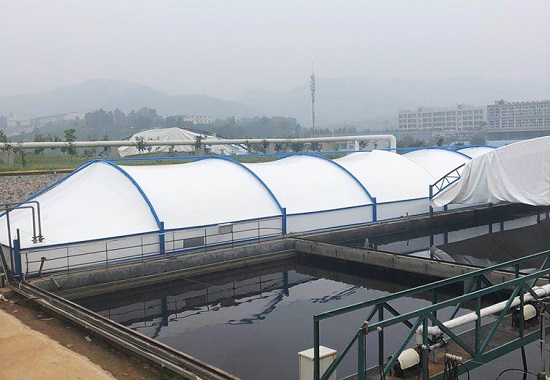 3、易安装:钢结构制作和膜体的加工都在工厂进行,加工质量得到可靠保障。现场安装时间短,减少了对场地的占用。尤其是旧池体改造项目可采取结构整体吊装,不影响池体内部的设备运转;