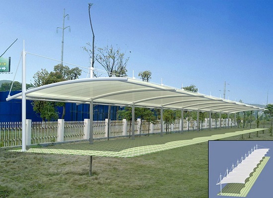 膜结构汽车停车棚_遮阳雨棚具有以下特点: