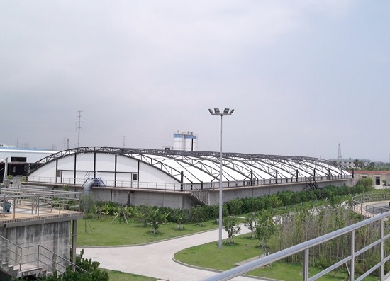 5、经济性:在超大跨度的池体覆盖上,污水厂_污水站除臭加盖反吊膜具有得天独厚的优势;